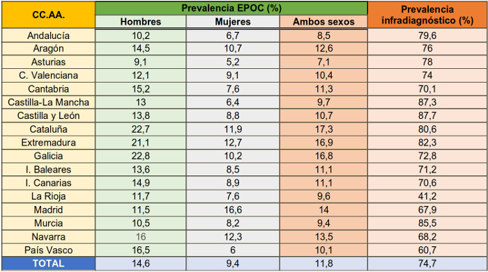 En mayores de 80 años, en efecto, la prevalencia aumenta hasta el 34,7 % en hombres y el 26,1 % en mujeres, por lo que, de media, la EPOC afecta a casi uno de cada tres individuos mayores de esta edad.