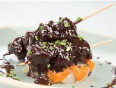 Brocheta de pollo al cacao