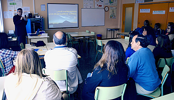 Los profesores de este centro, el primero de los diez en los que se impartirán estas charlas, han recibido una serie de consejos de actuación ante una situación de pérdida dental, por un golpe, que pueda darse en el colegio. Lo primero que los adultos deben hacer es conservar la calma, para proceder a buscar el diente y recogerlo.