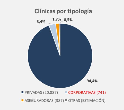 • Clínicas corporativas, que suman 741 en toda España y suponen un 3,4% del total.