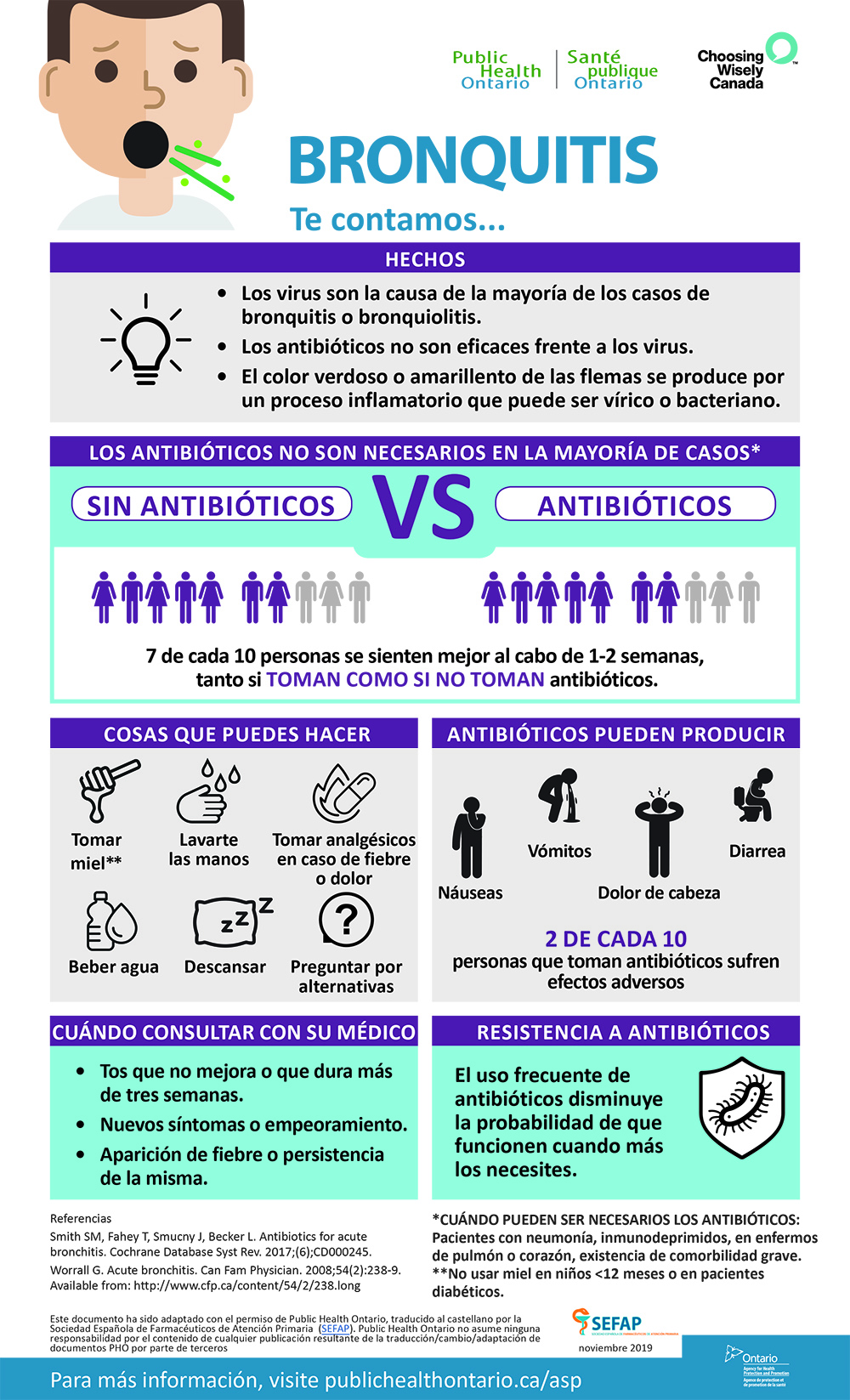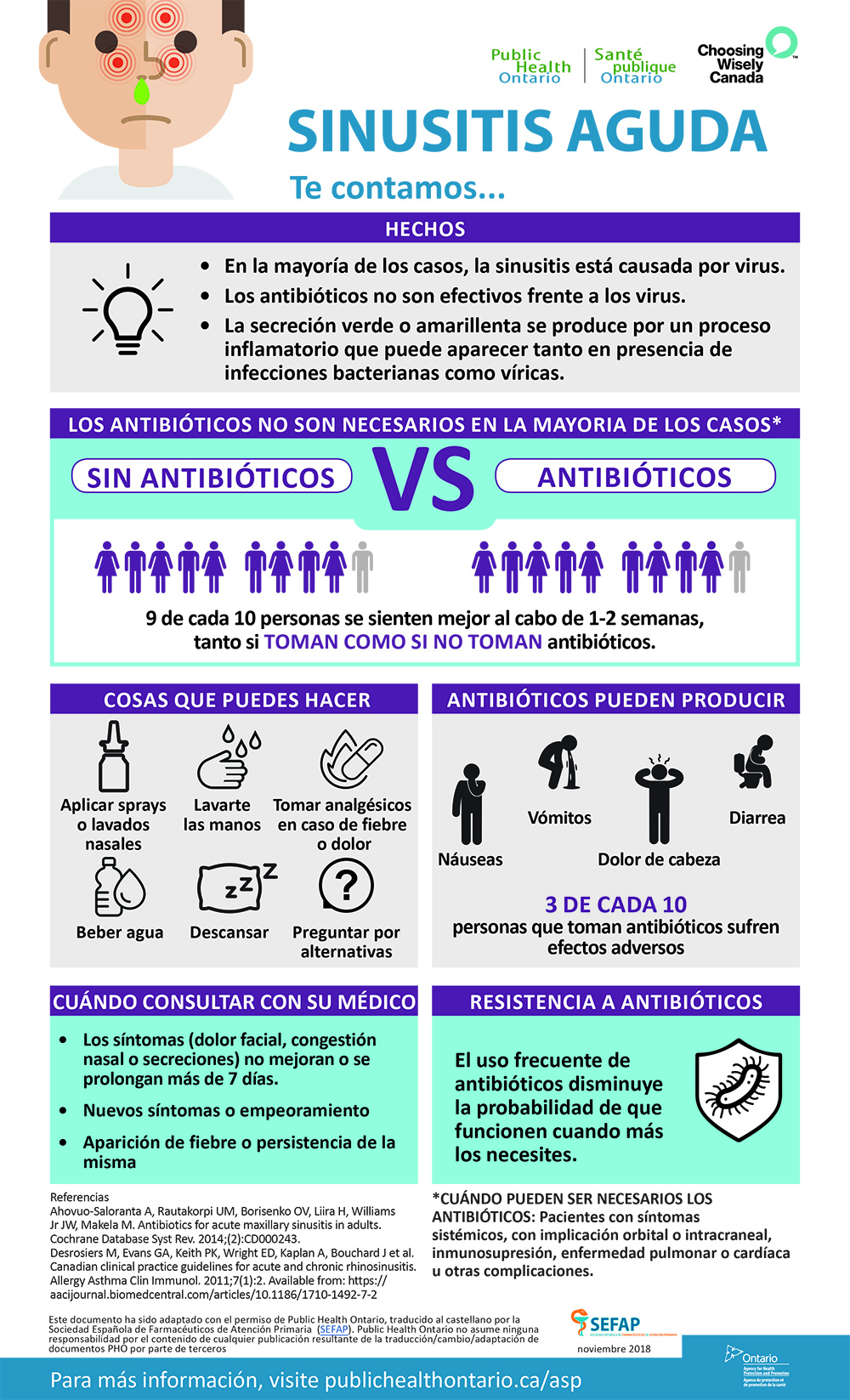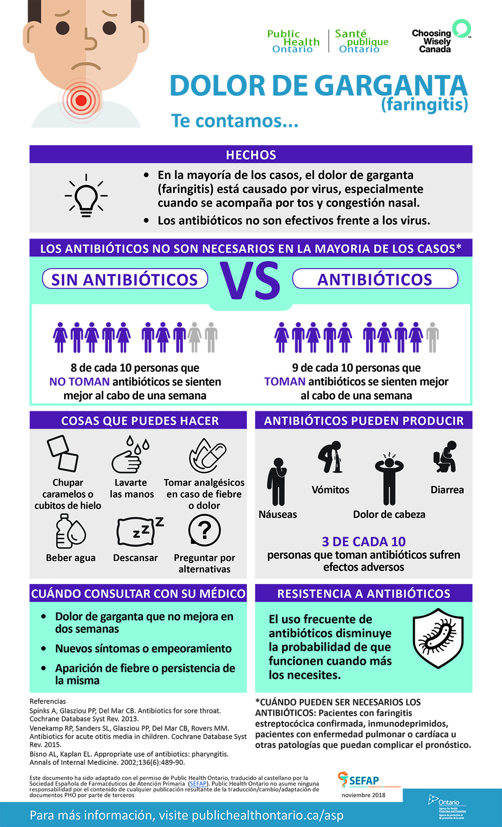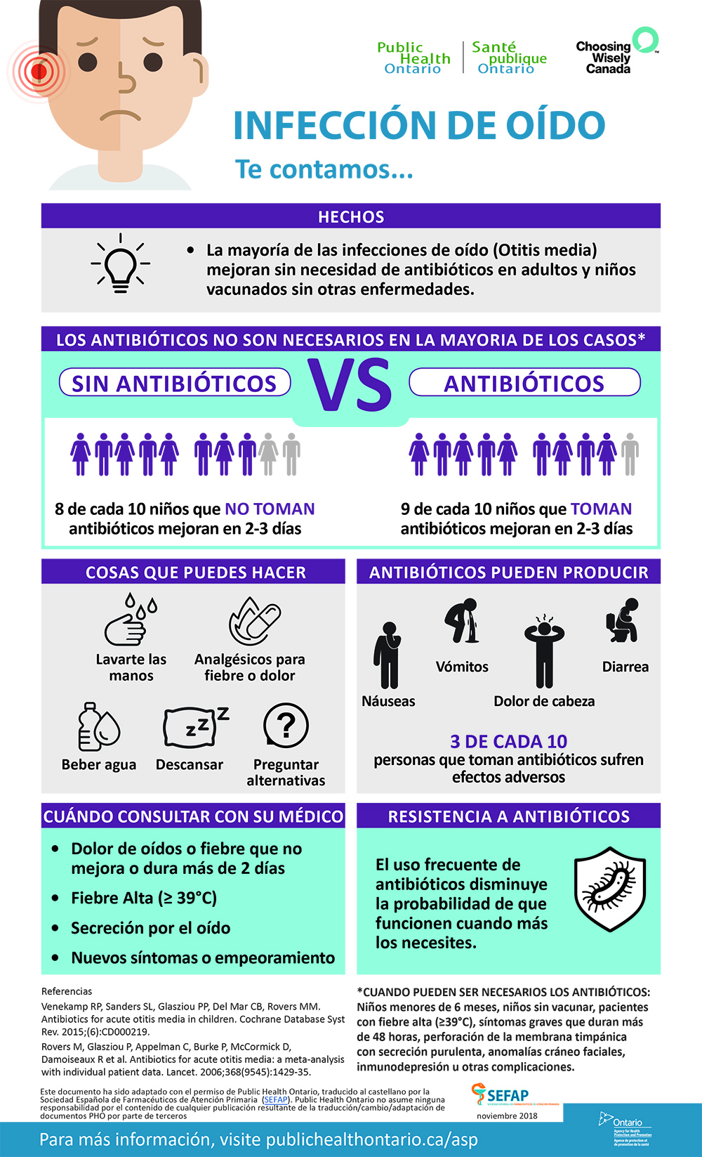 Las infografías, que cuentan con un diseño gráfico atractivo, visual y de fácil lectura, están avaladas por la mejor evidencia científica actual y surgen de una colaboración entre SEFAP y el Sistema Nacional de Salud de Canadá, que ha dado su permiso para la traducción y la adaptación de las infografías originales, creadas por el Public Health Ontario.