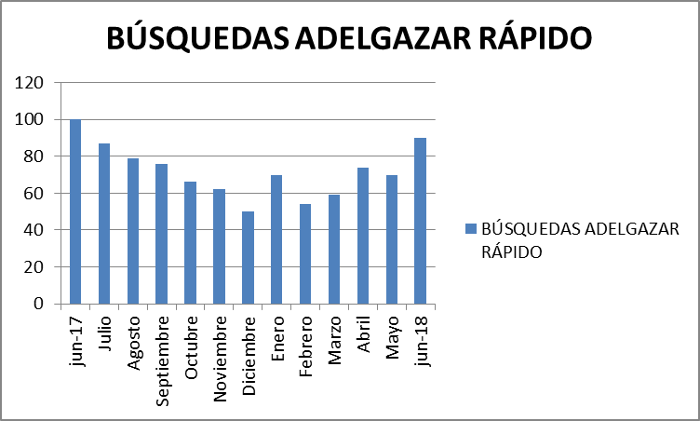 *Comparativa de búsquedas online de adelgazar rápido en el último año: