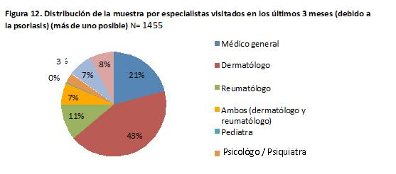 Distribución de la muestra por especialistas visitados en los últimos 3 meses (debido a la psoriasis) (más de uno posible)