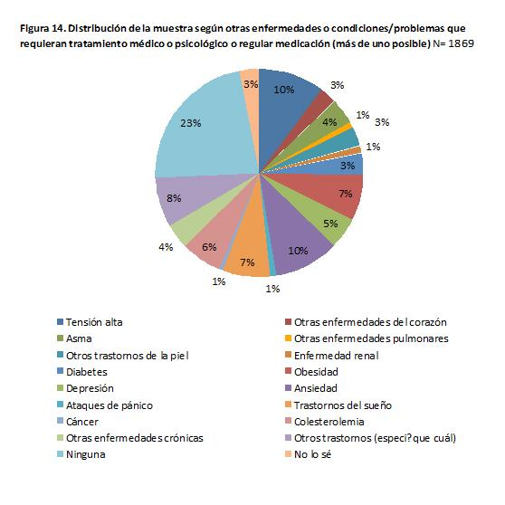 Distribución de la muestra según otras enfermedades o condiciones/problemas que requieran tratamiento médico o psicológico o regular medicación (más de uno posible)