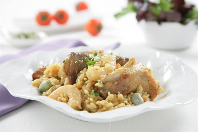 Arroz con conejo y gambas